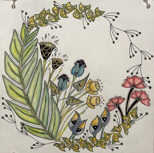 Discover the wonderful benefits of the Zentangle drawing method as you create a beautiful composition of fanciful botanicals using repeated patterns.
