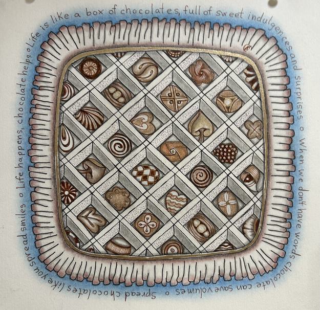 Discover the wonderful benefits of the Zentangle drawing method as you create a "Tangled Box of Chocolates" using repeated patterns.